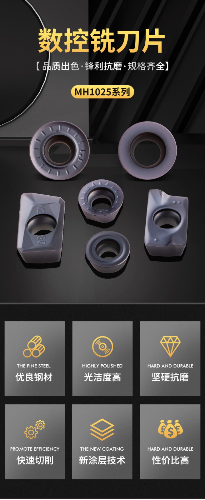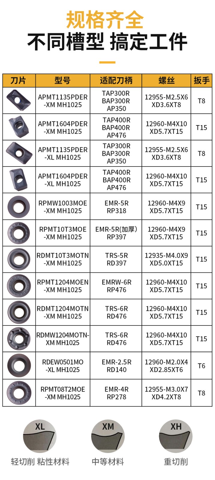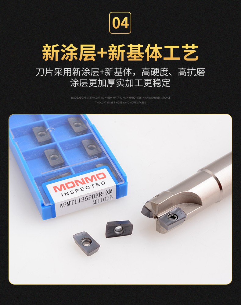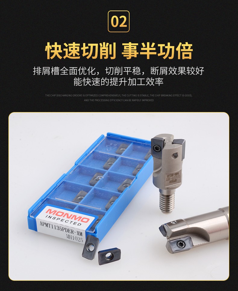 • 产品名称:APMT1135PDER-XM MH1025一行数控铣刀片 MONMO刀粒钢件铸铁专用